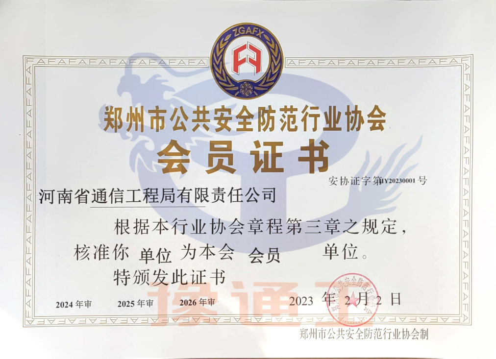 鄭州市安防協(xié)會(huì)會(huì)員證書